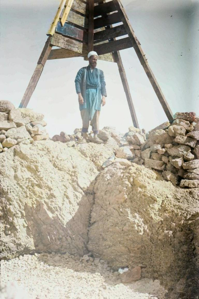شيخ درزي في عام 1900م يقف على جبل الحرمون بين حدود لبنان وسوريا وفلسطين.