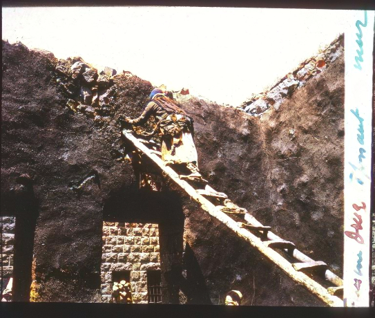 كانت الجدران مبنية بحجارة محلية وطين، وتم تطبيق طبقة سميكة من الجص على السطح الخارجي للجدران