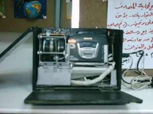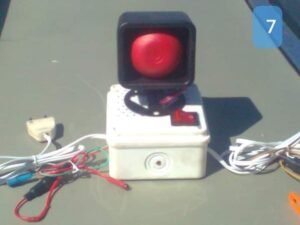 جهاز إنذار هاتفي. براءة اختراع رقم ٤٩٣٥ لعام ١٩٩٩ يصلح لحماية المصارف والمحلات التجارية والبيوت من السرقة. يلتقط الجهاز اي حركة داخل المكان ويقوم بإجراء مكالمات هاتفية على رقمين مختارين وليكن رقم الشرطة ورقم صاحبه ويذيع رسالة صوتية مسجلة مسبقاً كأن يقول: (محل فلان في منطقة كذا شارع كذا يتعرض للسرقة) ويستمر بالاتصال على هذين الرقمين بالتناوب الى حين حضور صاحبه وإسكاته. لا يصدر عن الجهاز أية أصوات مسموعة لمن كان بقربه. الجهاز يعمل بطريقة ميكانيكية ثم عدلته الى دارة الكترونية.