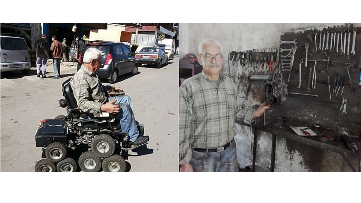 تعمل على البطارية ٢٤ فولت وتمكّن مستخدمها من صعود ونزول الأدراج كما انها صالحة للسير على كافة الطرقات. يتم الانتقال من وضعية السير على الطريق الى وضعية صعود الدرج آلياً دون تدخل من السائق، ويبقى مقعد السائق أفقياً أثناء الصعود والنزول. تمت صناعة هذا الكرسي يدوياً ومن مخلفات قطع السيارات والدراجات المنسقة وذلك لعدم توفر الامكانات المادية لشراء قطع جديدة او تحمل كلفة التصنيع والخراطة.