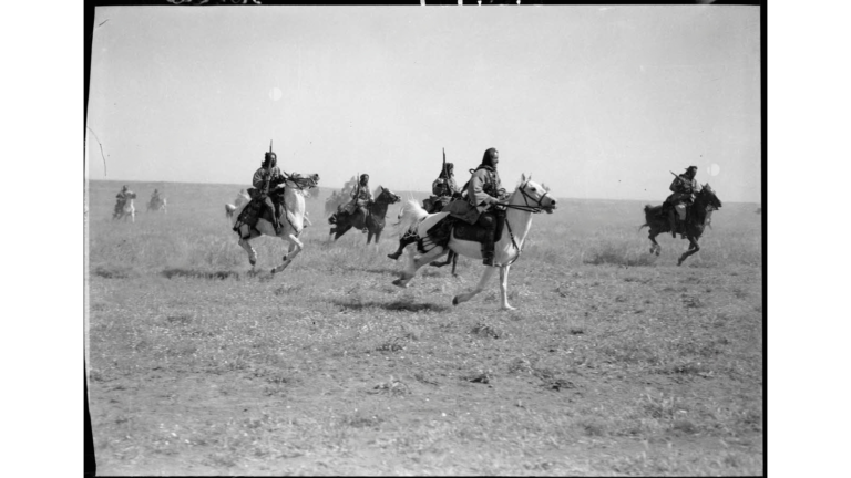 You are at:Home » سرب من فرسان بني معروف تركض بسرعة في وسط مساحة عشبية شاسعة. عام 1940م