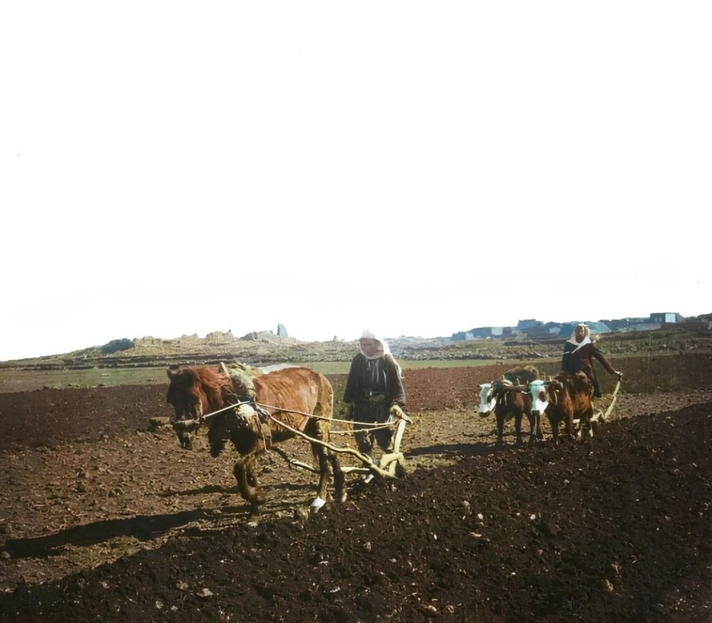 صورة لحراثة الأرض في جبل العرب عام 1926.وإليكم الصورة بعد المعالجة عبر الذكاء الاصطناعي.المصدرالمتميز
