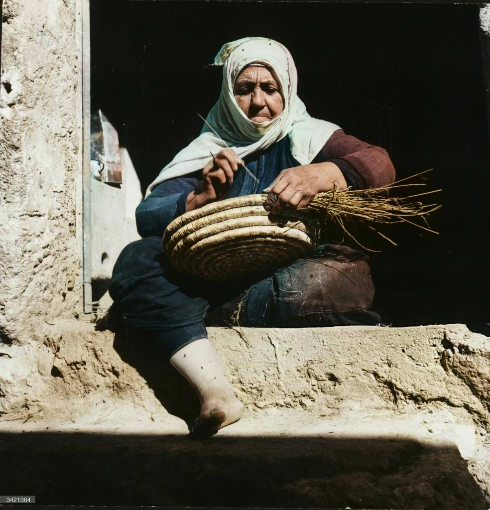 امرأة درزية تحيك سلّة قش عام 1955