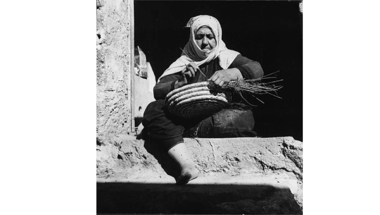 امرأة درزية تحيك سلّة قش عام 1955