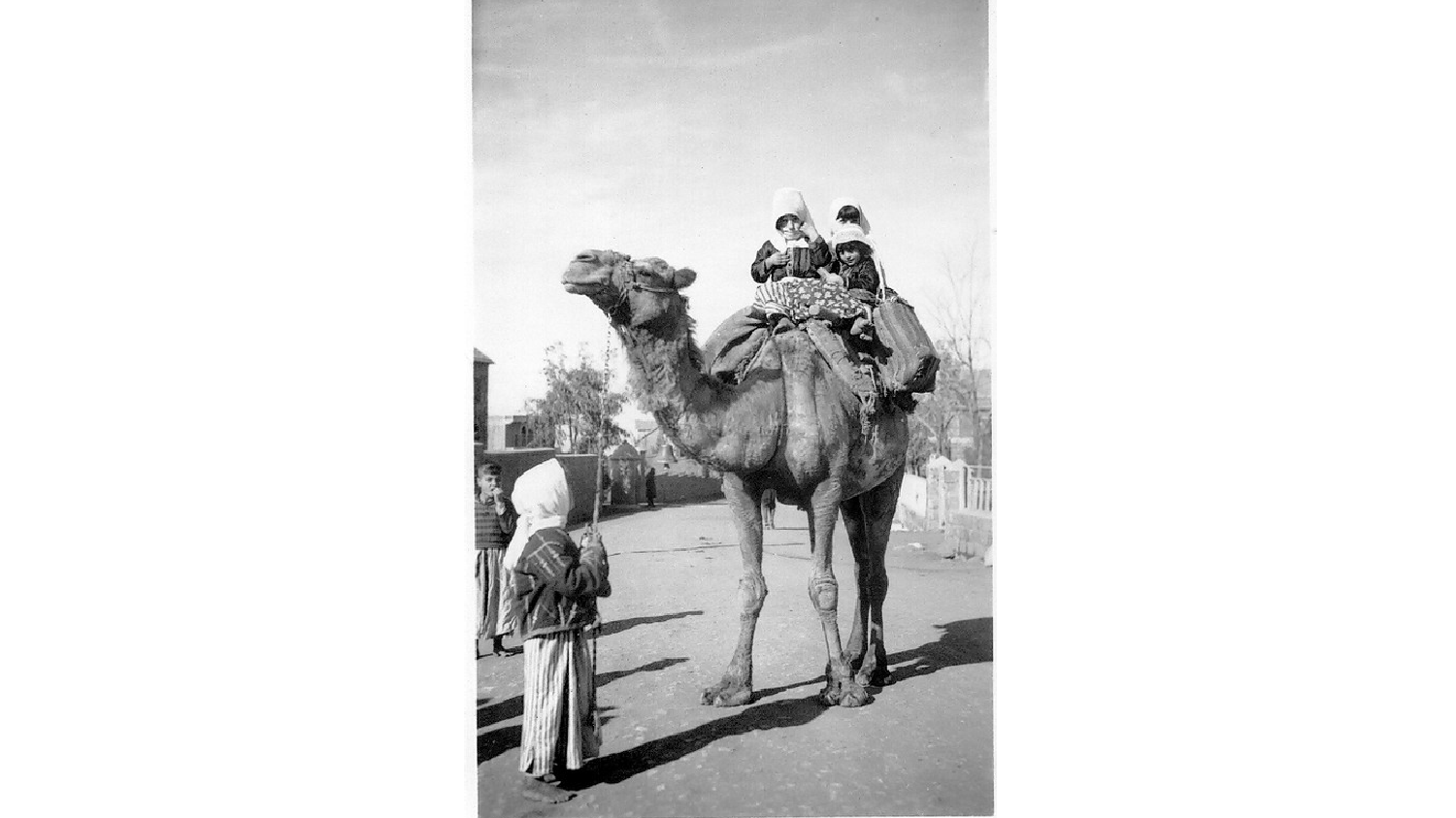 صورة لأطفال يركبون جملاً عام 1937 في جبل العرب