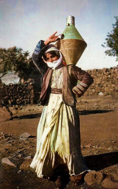 صورة لفتاة من بني معروف في جبل العرب عام 1937.