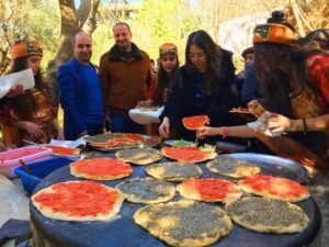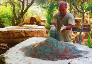 ولا يمكن زيارة “كهف الفنون” من دون تذوّق مأكولات القرية اللبنانية، وقد بنى لذلك أفراناً من التراب لشوي وطهي المأكولات القروية والمنقوشة البلدية. هذا الى جانب الأشجار المثمرة التي زرعها في حديقة الكهف ومحيطه، في ظل تنوّع بيئي يجمع حوالى 40 نوعاً من الأشجار والنباتات.