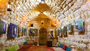 في بلدة الجاهلية الشوفية، بدأت مسيرة الفنان غاندي أبو ذياب، الشاب الموهوب الذي أحبّ الكتابة كما النحت والرسم، وإذ به يكتشف في قريته كهفاً يعود الى العهد العثماني منذ ما يقارب الـ400 سنة، وهو عبارة عن ثلاثة أقبية من العقد متلاصقة تمتد على مساحة 1500م2 مع الحديقة التراثية المحيطة به، ليبدأ ورشة إعادة تأهيل للكهف وإذ به يكتشف كهفاً إضافياً على شكل مغارة ضيّقة عرض جدرانها مترين بارتفاع المتر والنصف، فعمل على حفر الصخر على عمق متر ونصف المتر بطريقة فنية ساعدت في انشراح المكان، من دون المساس بأرضيته الصخرية الملتوية.