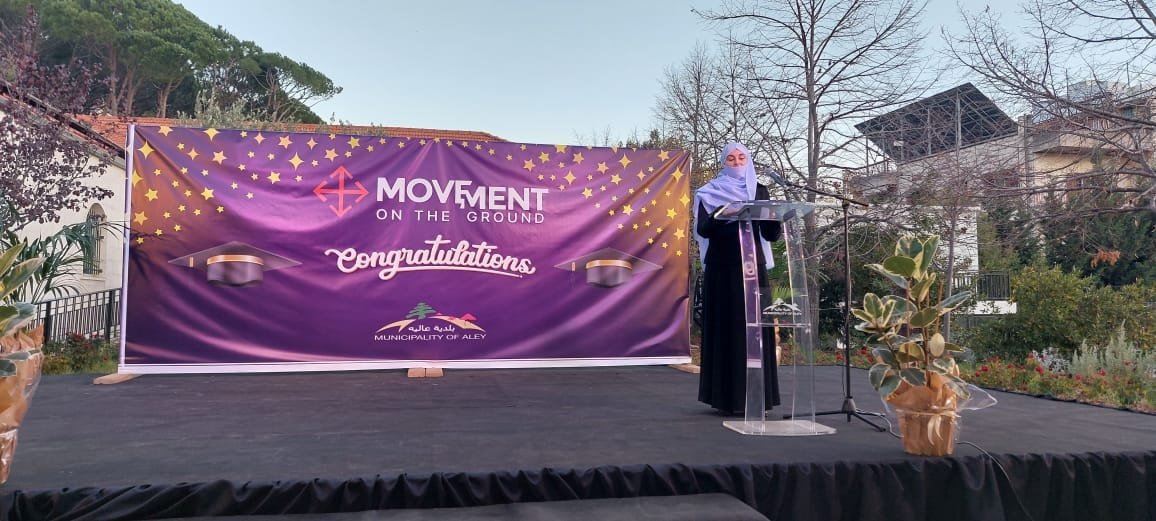 وقد قدمت مديرة المشروع الأستاذة سهى التيماني شرحًا مفصلًا حول المشروع، وأعربت عن شكرها للجمعية الممولة والبلدية على دعمهما. وقد قدّمت الآنسة ماريا كوزيني، رئيسة العمليات في جمعية Movement on the Ground, تمنياتها للطالبات بتحقيق النجاح الدائم وشكرت البلدية على دعمها للمشروع. كما تطرق رئيس بلدية عاليه إلى اهتمام البلدية الكبير بالشأن التربوي، وأعرب عن فخره بالشابات الخريجات، مع تمنياته لهن بمستقبل باهر. كما نوه بالدور الكبير التي تقوم به الدكتورة منى عقل التي تعد من الأشخاص الداعمين للشباب من خلال تأسيس مكتب التطوير والتنمية وتقديم الدعم اللازم لهم.