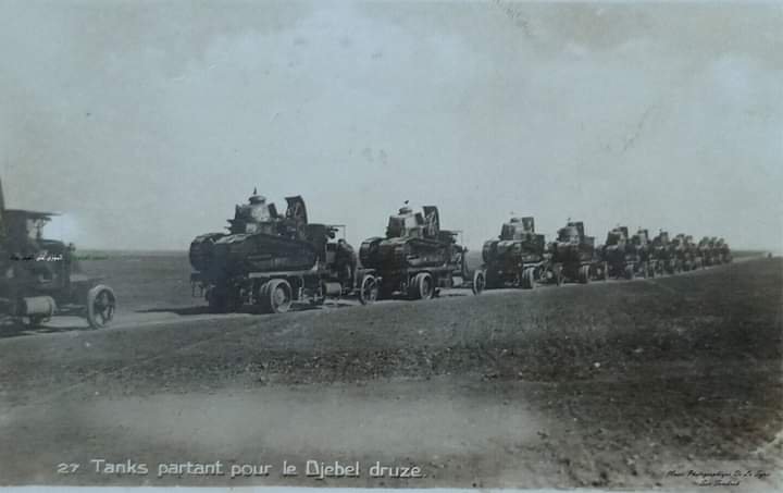 تشاهدون في الصورة المرفقة الحملة العسكرية الفرنسية على جبل العرب عام 1925.