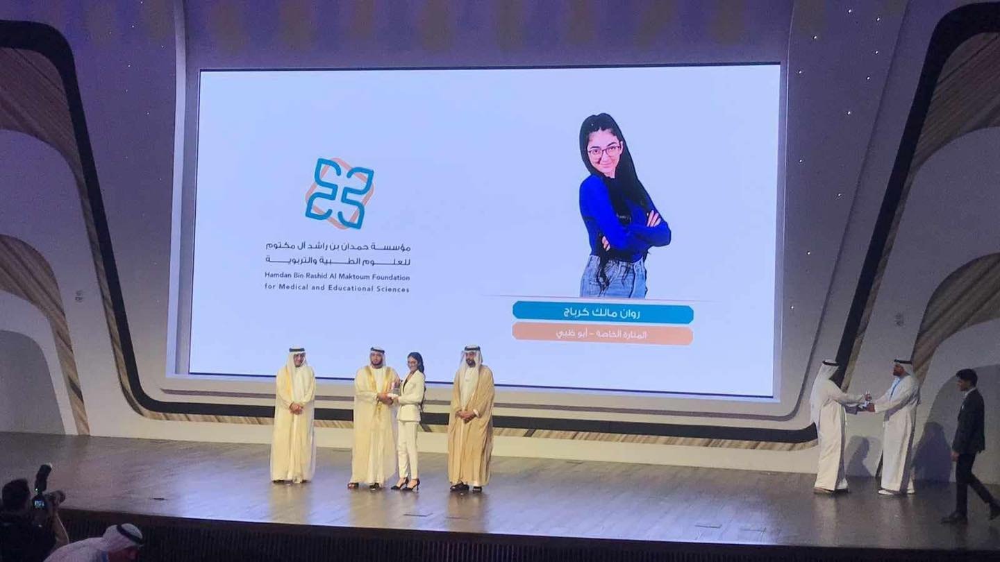جرى تكريم الطالبة روان مالك كرباج، من أم الزيتون في جبل العرب، بجائزة الشيخ حمدان بن راشد آل مكتوم للتميّز والإبداع في أبو ظبي.