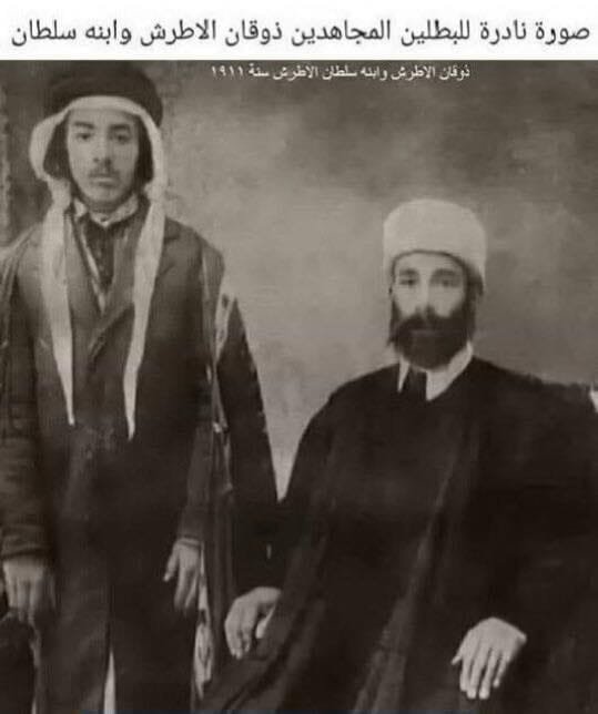 تداولت وسائل التواصل الاجتماعي صورة تعود الى عام 1911 تجمع المجاهد الكبير الشيخ المرحوم أبو علي ذوقان الأطرش مع ابنه الشاب سلطان الذي أصبح قائدا للثورة السورية الكبرى.المصدر 1المصدر 2
