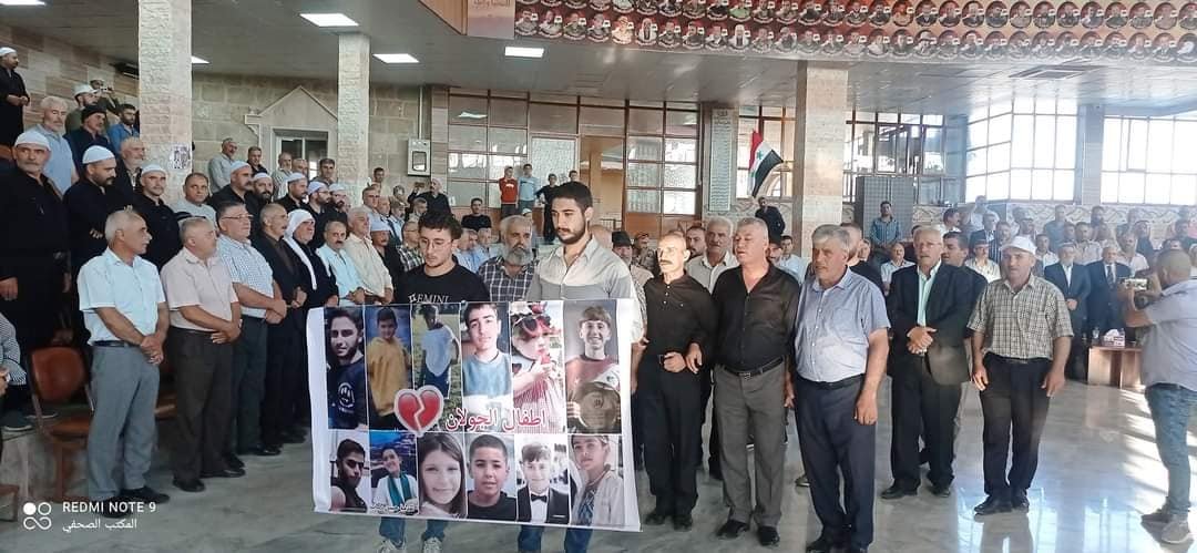 أقيم في بلدة حضر موقف عزاء لشهداء مجدل شمس في الجولان السوري المحتل بحضور شعبي ورسمي وفعاليات المحافظة الرسمية والشعبية.
